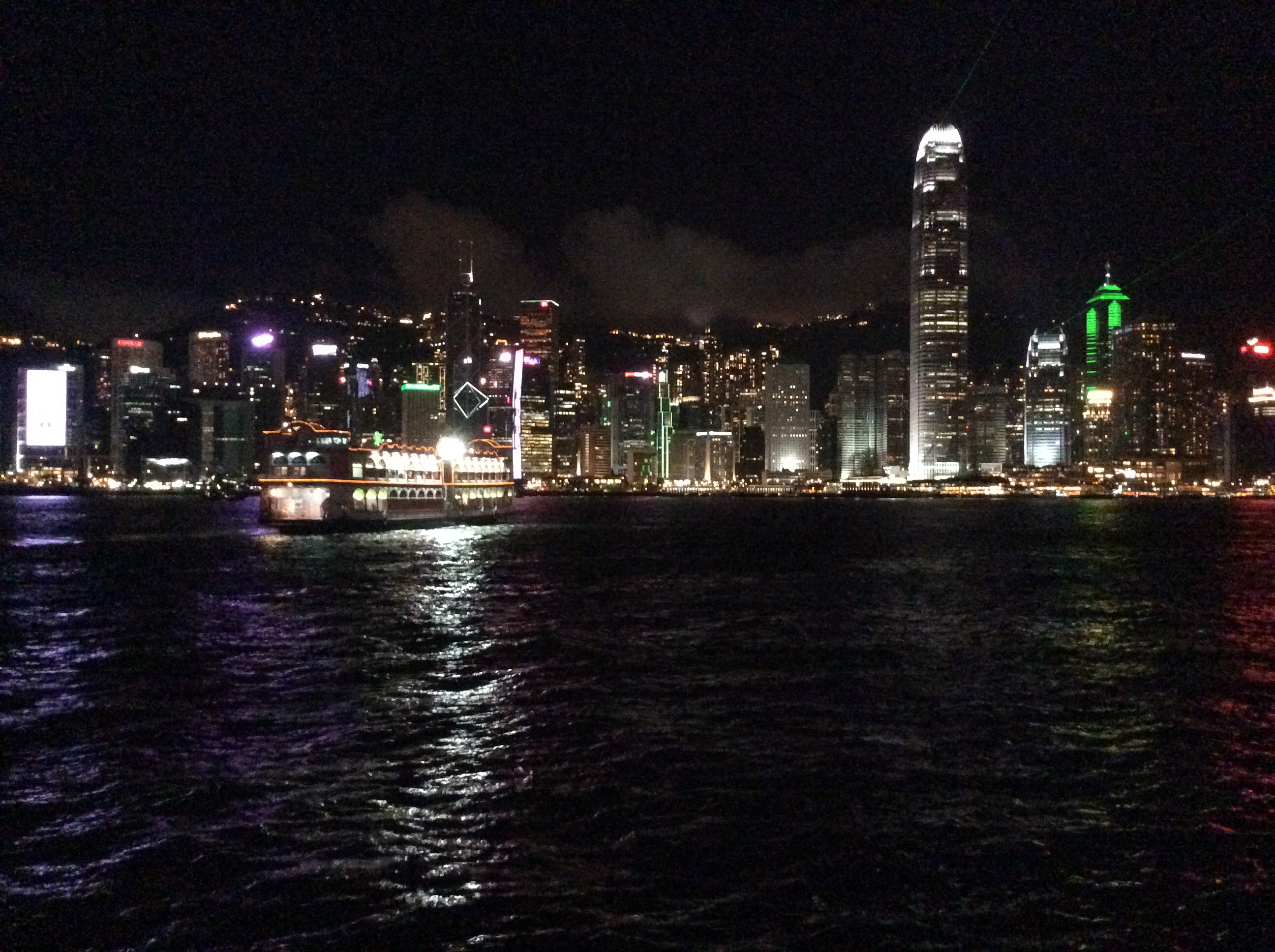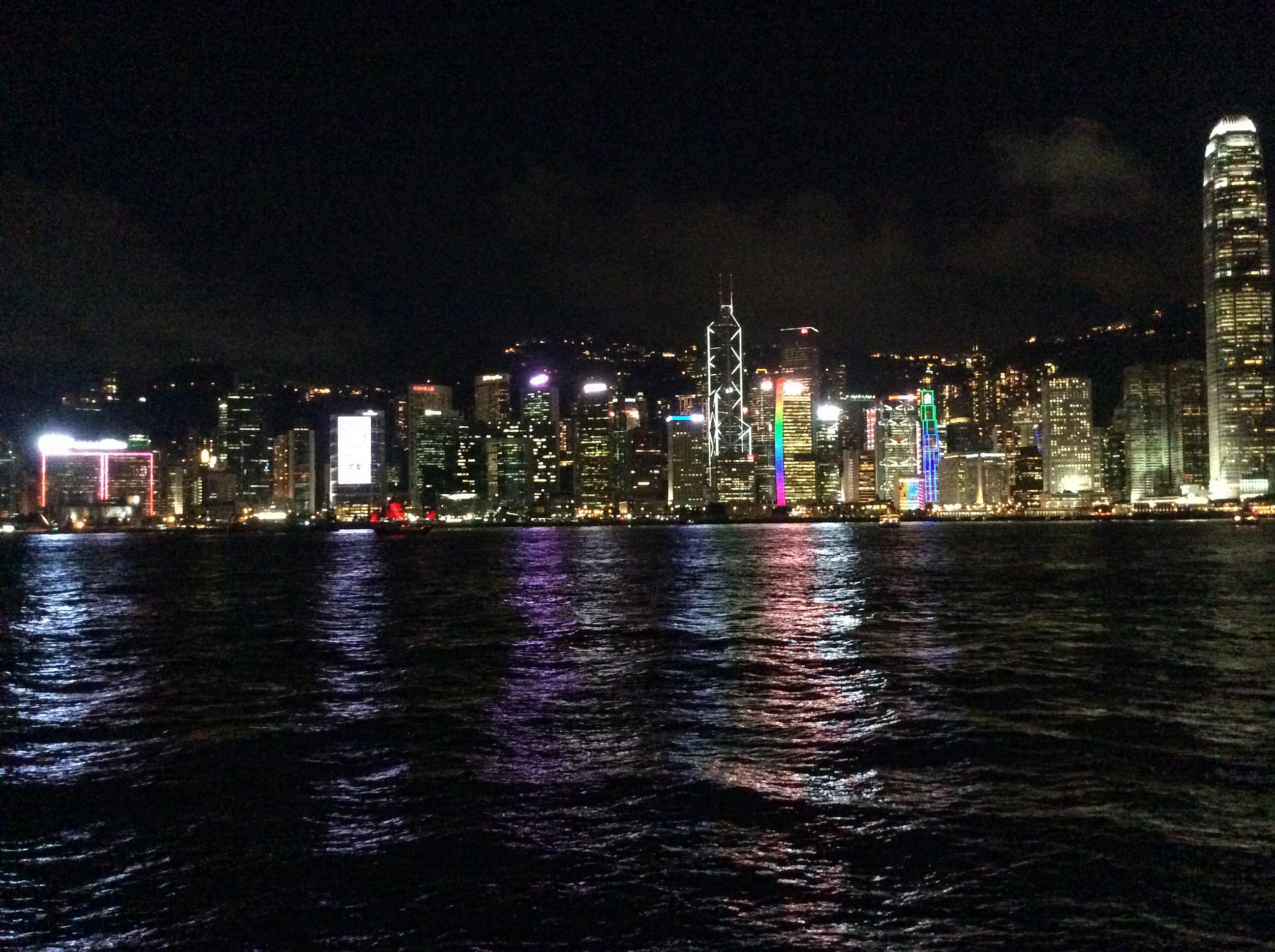 Elke avond weer lijkt de skyline van Hongkong twintig minuten lang een discotheek. De westoever van de Parelrivier dient dan tijdelijk als balzaal. Van klokslag acht tot twintig over zijn tientallen wolkenkrabbers hierop de dansers. Ritmisch lichten de soms wel duizend voet hoge torens op, meedeinend op de klassieke muziek gedraaid vanaf de Kowloon-kade. Niet iedereen beweegt mee, sommige kolossale kantoorgebouwen en fletse flats staan donker en stil toe te kijken op de achtergrond. Ze lijken de genrekeuze niet te kunnen waarderen. Ik begrijp ze wel, het is ook niet echt mijn smaak.