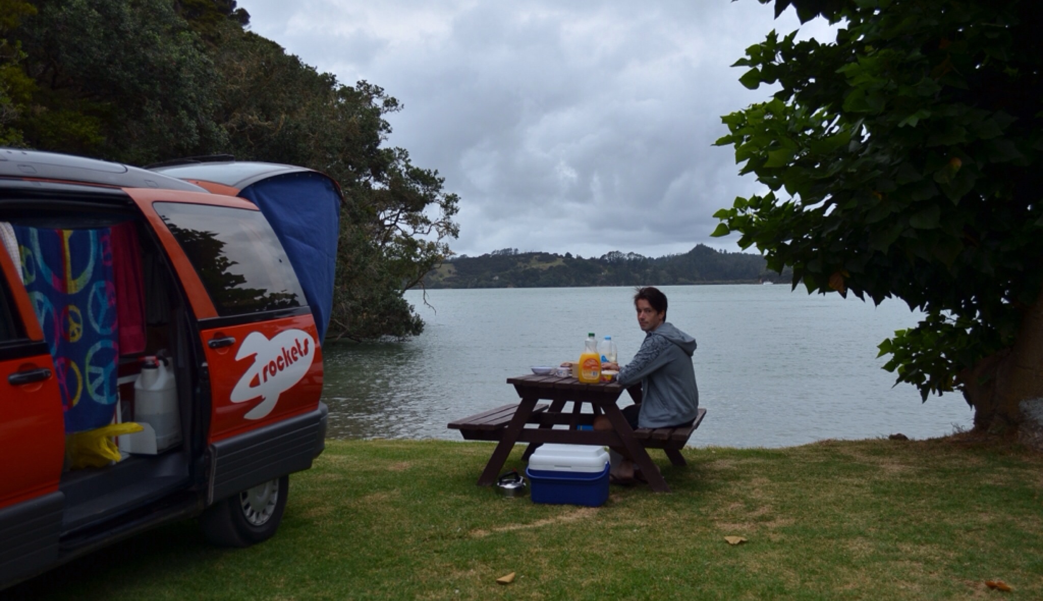 De bijna volledig oranje gespoten ‘Cogswell’; de door de camperverhuur gekozen naam voor onze campervan, heeft ons de afgelopen tien dagen trouw gediend. Waar deze naam trouwens vandaan komt, dat moeten we nog even uitzoeken, maar het zal vast iets met de ruimtevaart te maken hebben (de organisatie heet namelijk Spaceships). Hij is klein maar fijn en ‘s nachts een tikkeltje koud, maar wel makkelijk in de omgang en (op een onderweg verloren reserveband na) betrouwbaar.